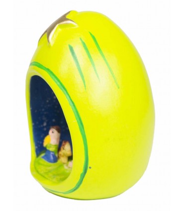 Crèche en terre cuite peinte à la main, 7 figurines. Les personnages se rapprochent de la crèche traditionnelle. Largeur : 6cm. Hauteur : 8cm.