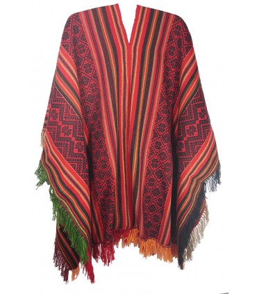 Poncho aux motifs ethniques, tissé en deux parties rectangulaires, confortable et chaud pour l'hiver.