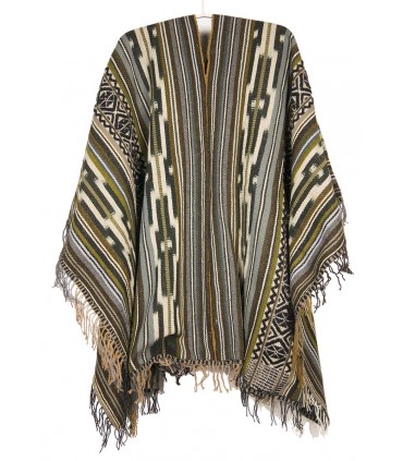 Poncho provenant de la ville de Sicuani (au sud de Cuzco), teintures végétales, dessins et couleurs typiques de la région. Sa conception et sa réalisation faites entièrement à la main lui donnent un caractère original et résistant.